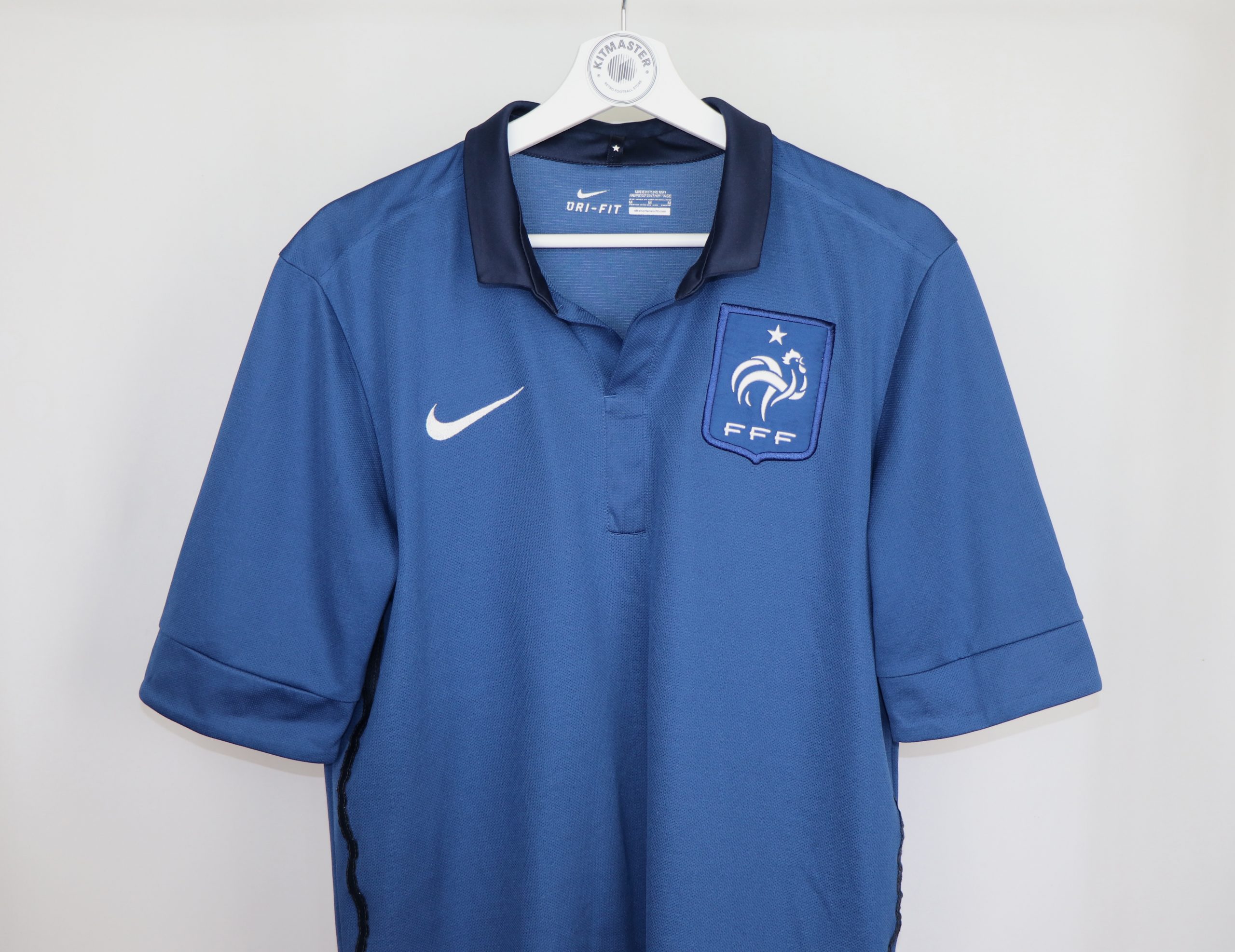 Maillot domicile de l’équipe de France 2011/12. Suite au fiasco de la Coupe du Monde 2010 en Afrique du Sud, la France change de sélectionneur et nomme Laurent Blanc. Désirant redorer un blason écorné, de nombreux cadres et anciens vont également laisser leurs places à de jeunes talents. Les Bleus, en reconstruction, réalisent une campagne de qualifications honorable pour l’Euro 2012, terminant premiers du groupe. Ils vont également remporter des victoires de prestige en amical, contre l’Angleterre, le Brésil et l’Allemagne notamment.